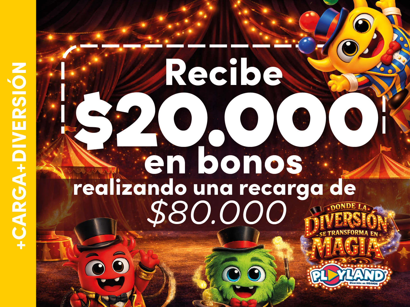 Recarga $80.000 en la tarjeta Playland y recibe $20.000 en bonos