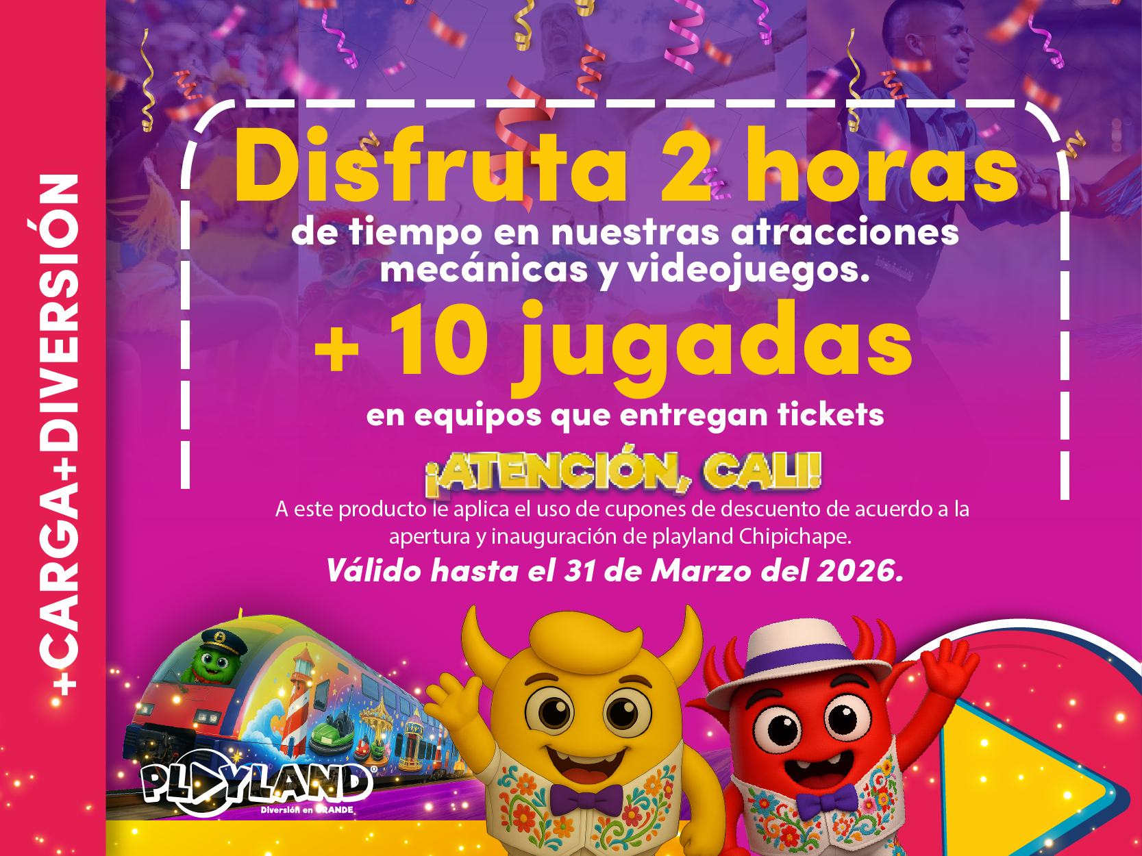 * No incluye la tarjeta Playland. Para acceder a la recarga debes adquirir la tarjeta en taquilla